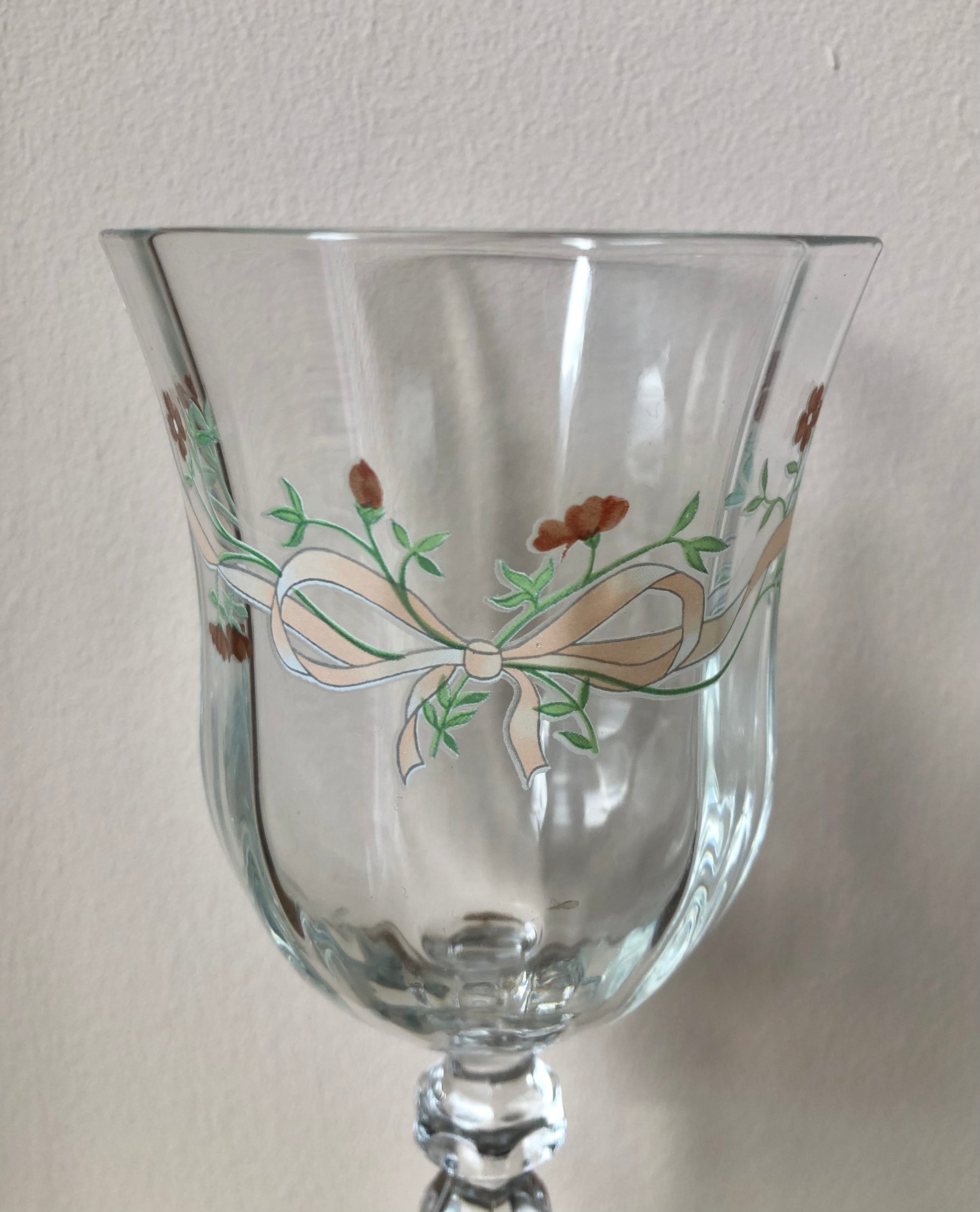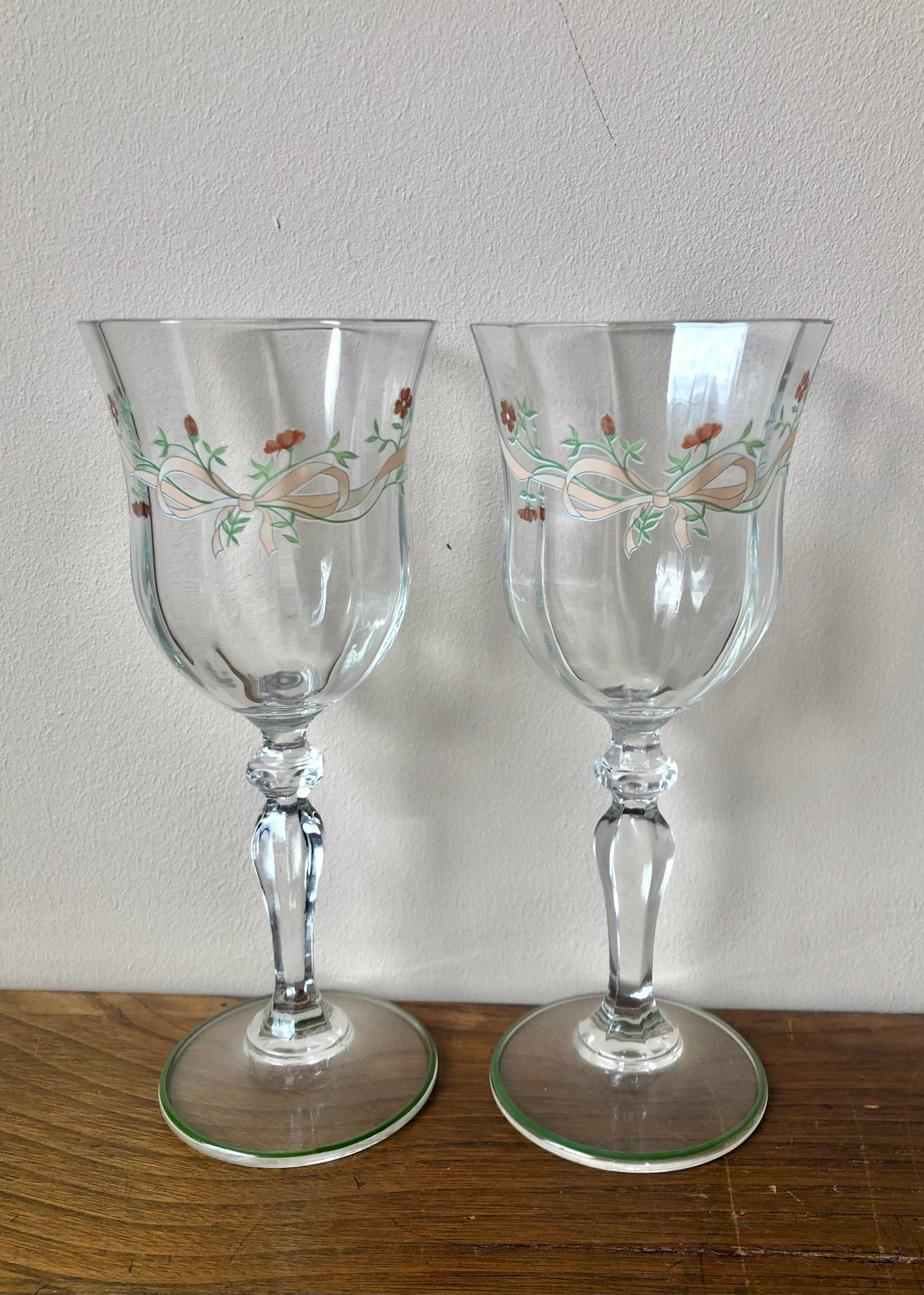 Pair of 1980's Johnson Brothers wine glasses in "Eternal Beau" design.