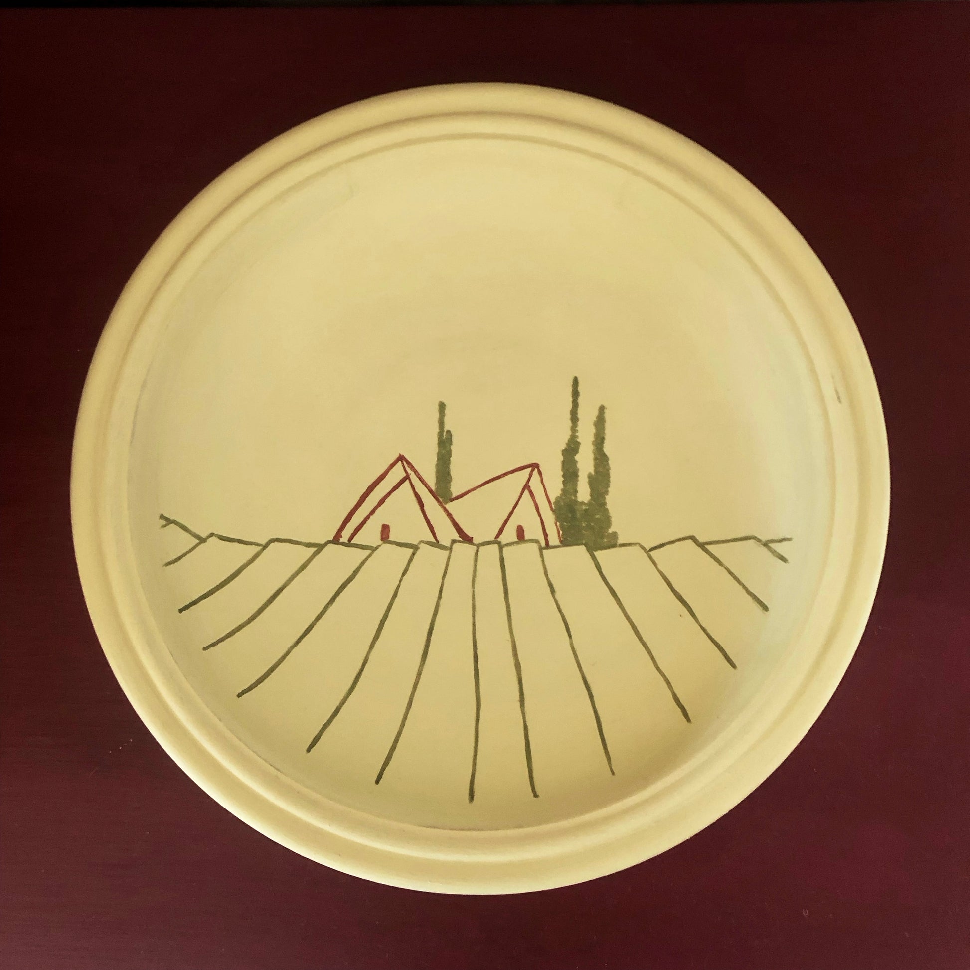 Hand-Painted Wooden Wall Plate with Rustic Landscape Design