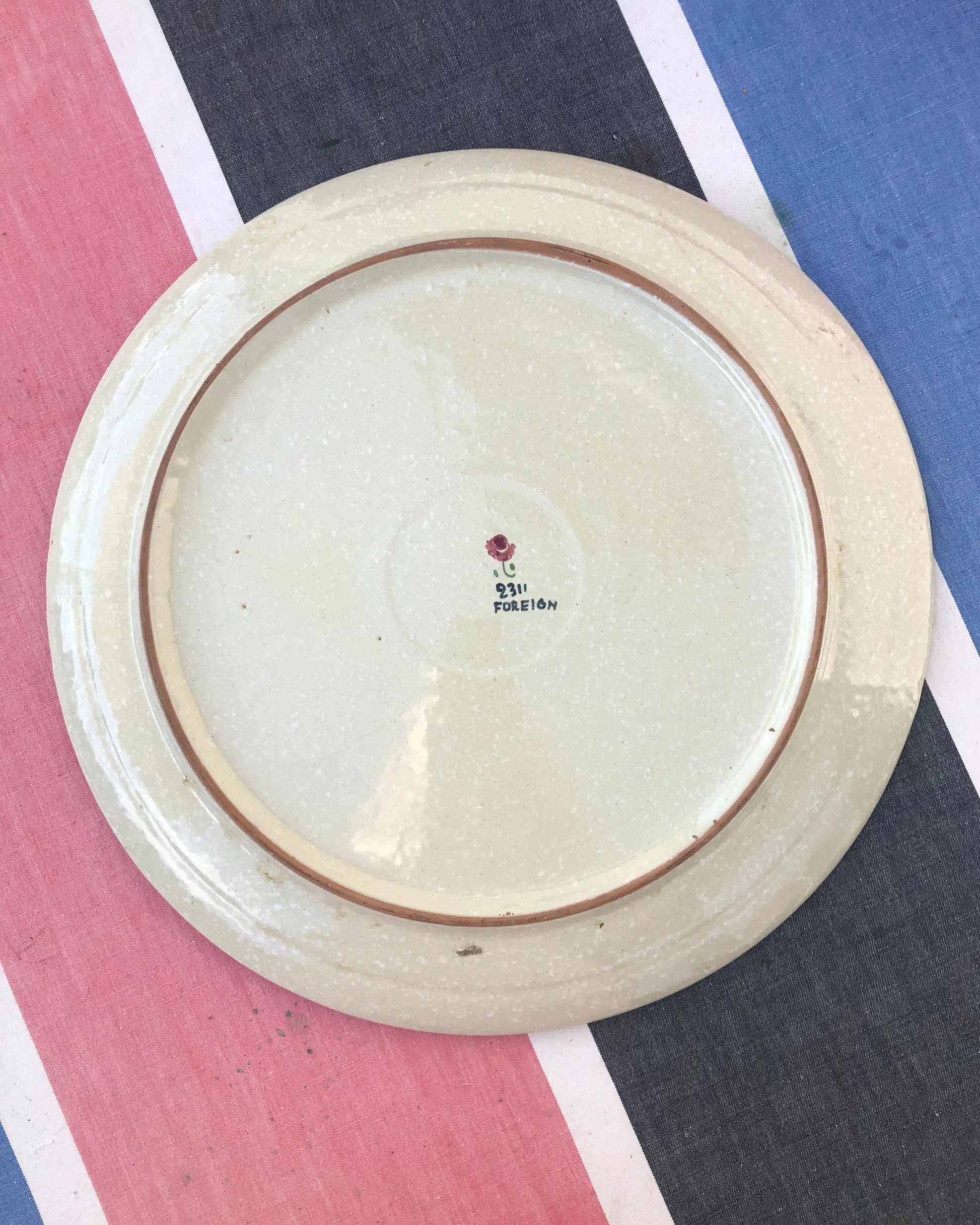 Vintage Italian serving platter depicting wine and salami. A hard to find item perfect for functional use or as wall art. Six matching dinner plates also available.